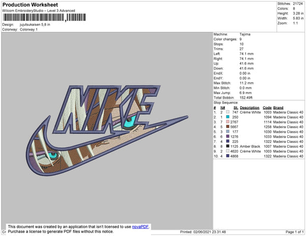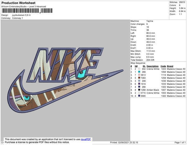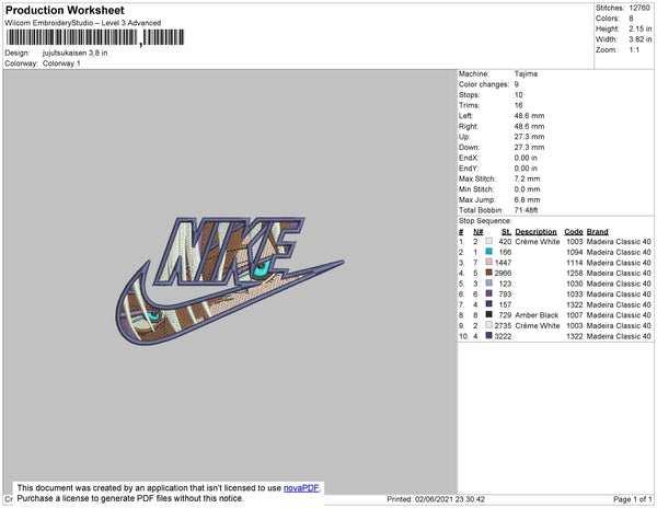 Nike Jujutsukaisen Embroidery File 4 size