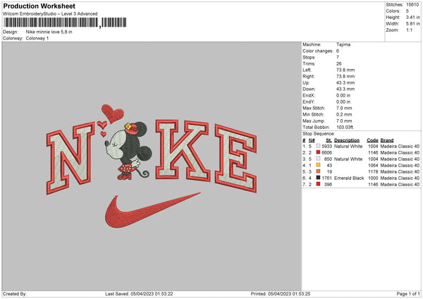Nike Kiss Love V1 Embroidery File 6 sizes