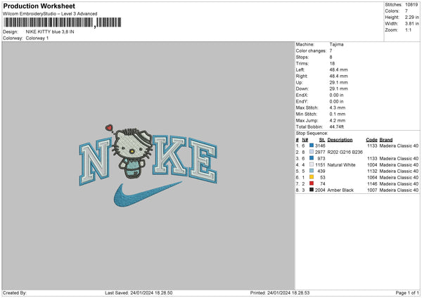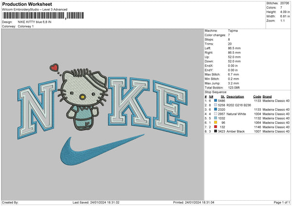 Nike Kitty Blue Embroidery File 6 sizes
