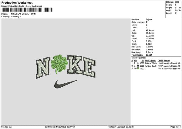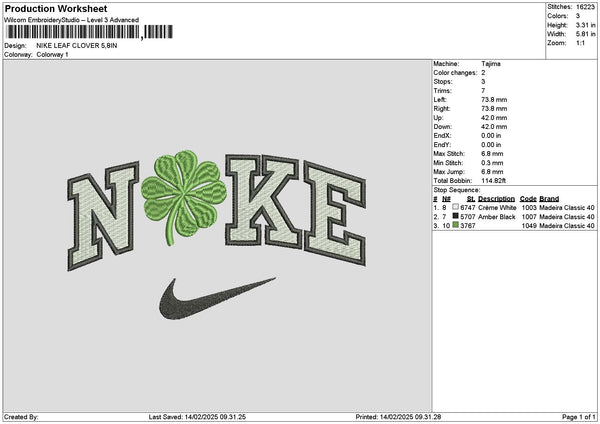 Nike Leaf 1402 Embroidery File 6 sizes