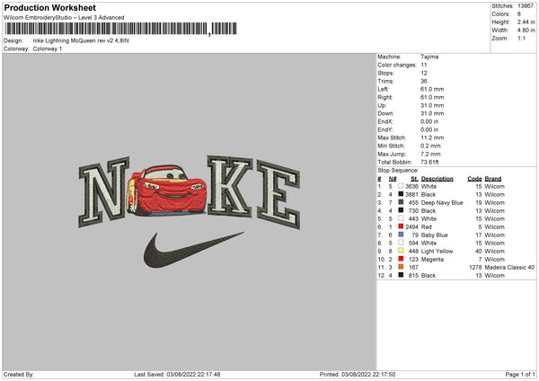 Nike Lightning Mcqueen V2 Embroidery File 4 sizes
