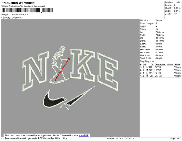 Nike Lil Skull Embroidery File 4 size