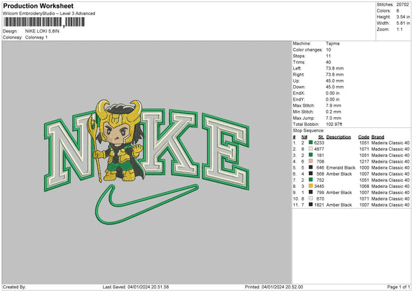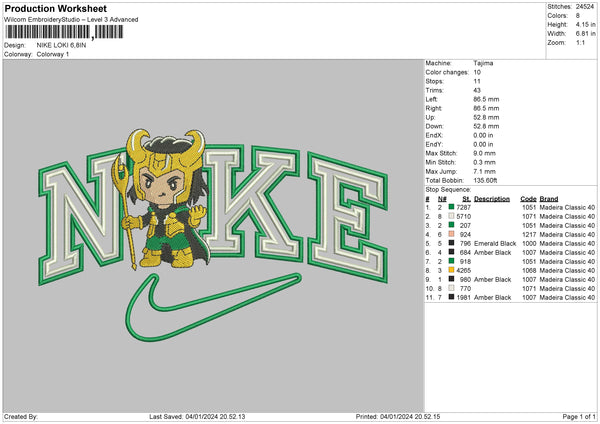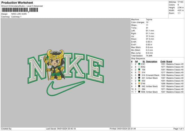 Nike Loki02 Embroidery File 6 sizes