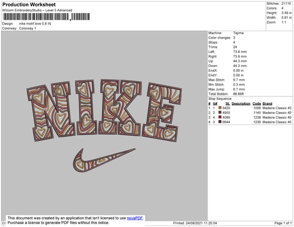 Nike Love Pattern Embroidery File 4 size