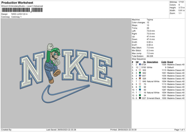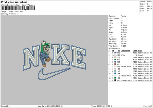 Nike Luigi Embroidery File 6 sizes