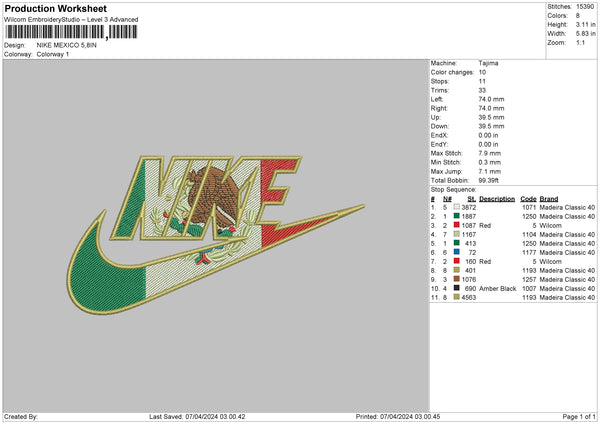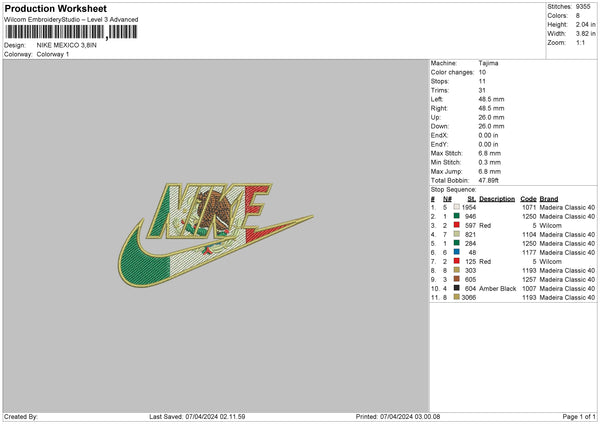 Nike Mexico Embroidery File 6 sizes