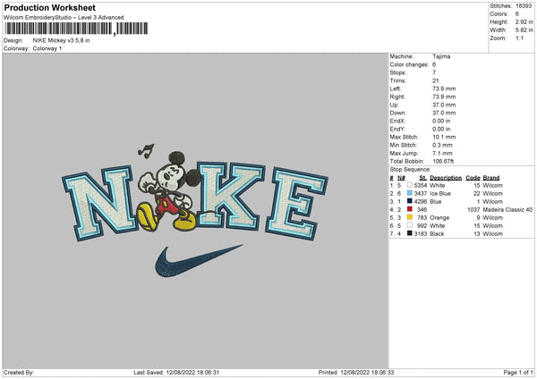 Nike Mickey Embroidery File 5 sizes