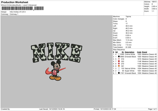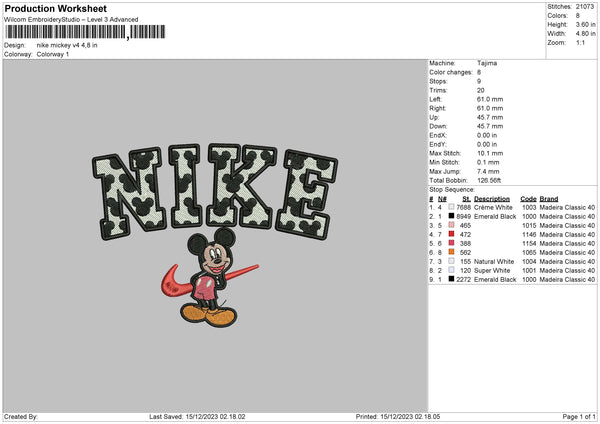 Nike Mickey V004 Embroidery File 6 sizes
