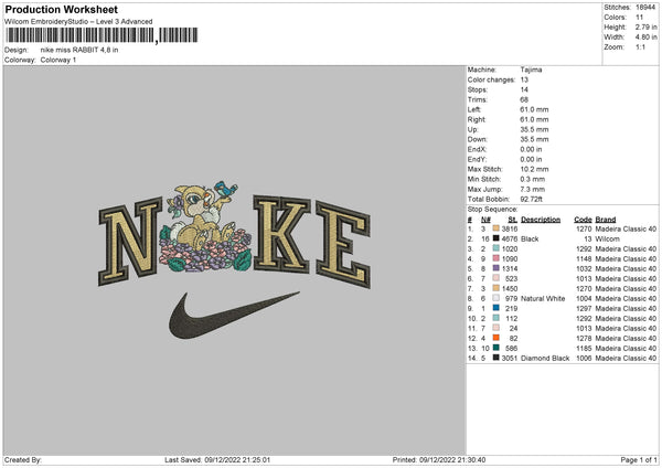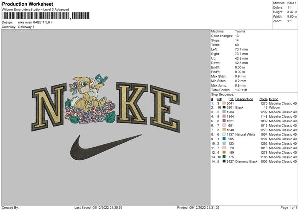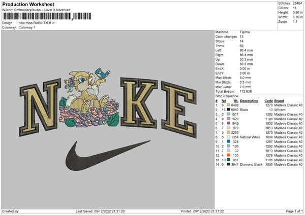 Nike Miss Rabbit Embroidery File 6 sizes\
