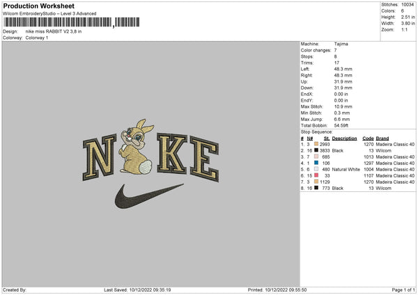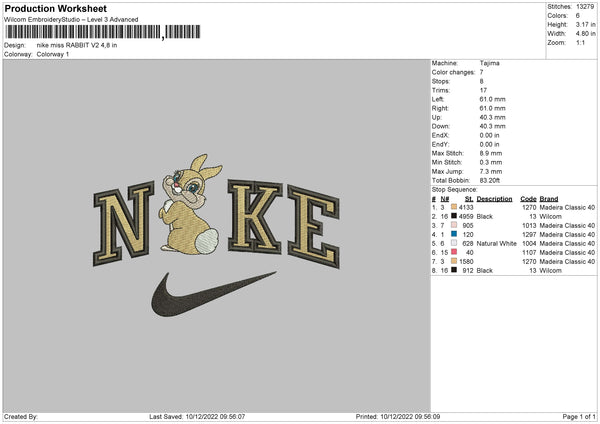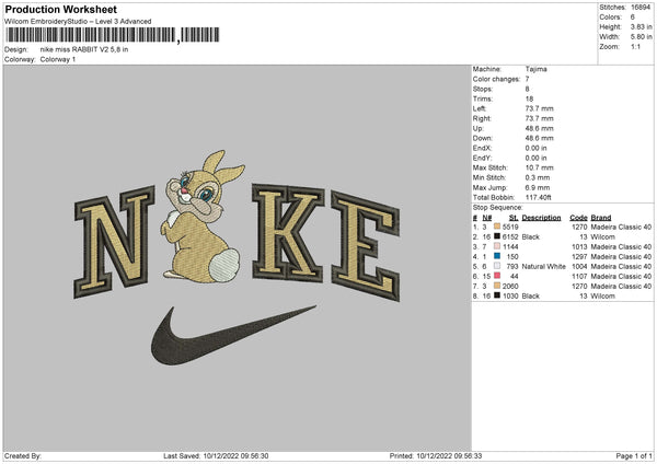 Nike Miss Rabbit V2 Embroidery File 6 sizes