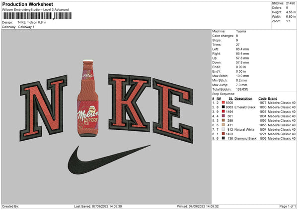 Nike Molson Embroidery File 5 sizes