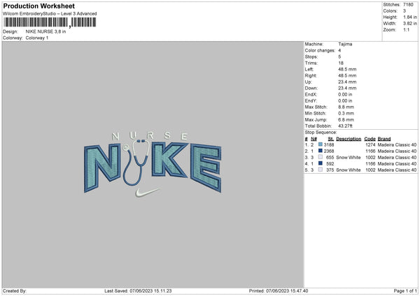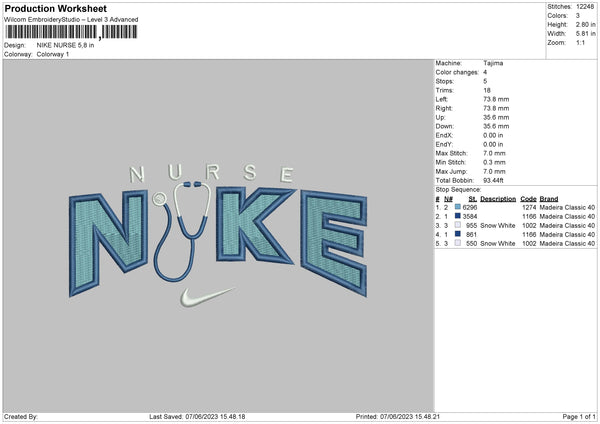 Nike Nurse Embroidery File 6 sizes