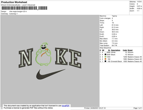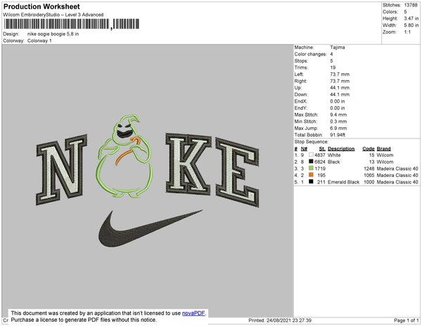 Nike Oogie Boogie Embroidery File 4 size