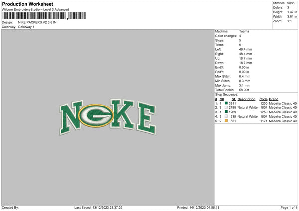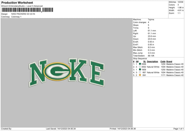 Nike Packers V2 Embroidery File 6 sizes