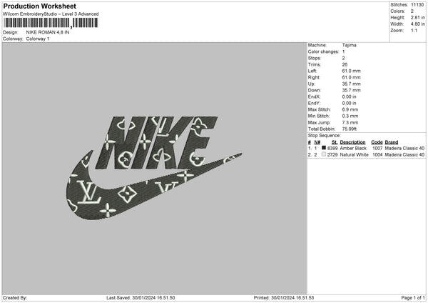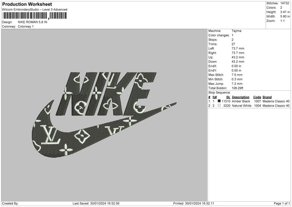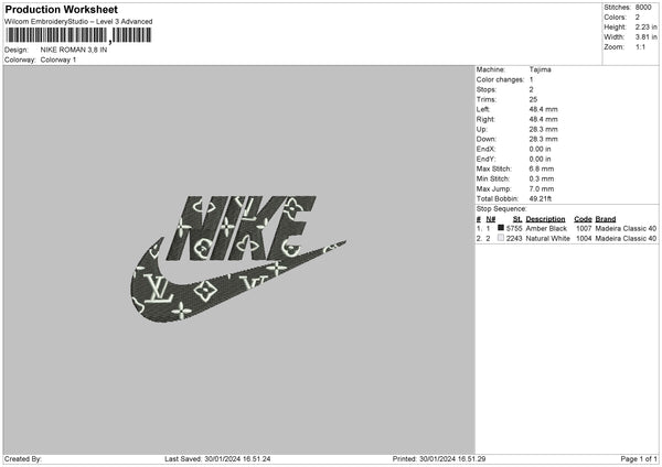 Nike Pattern 3024 Embroidery File 6 sizes