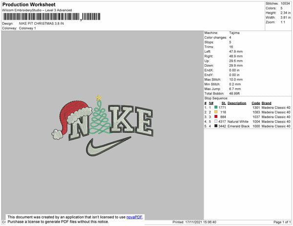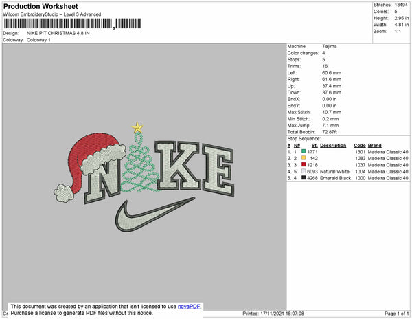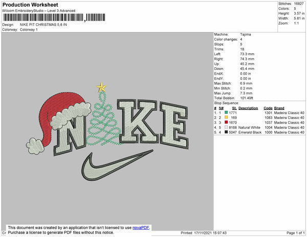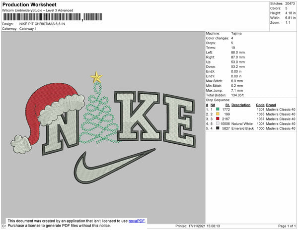 Nike Pit Christmas Embroidery File 4 size