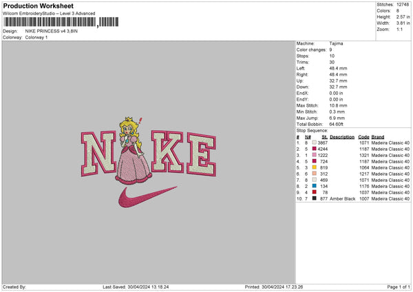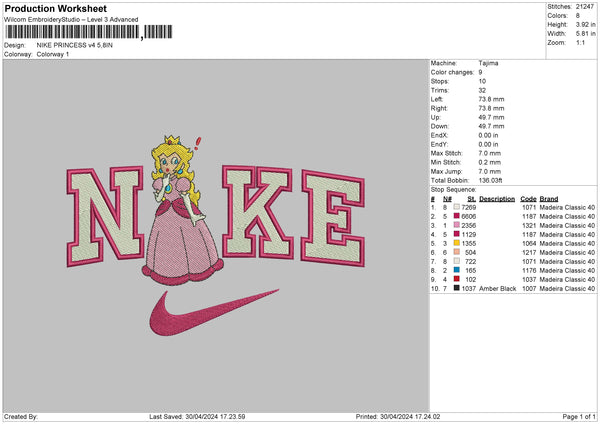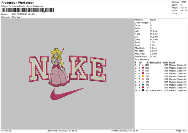 Nike Princess 3024 Embroidery File 6 sizes