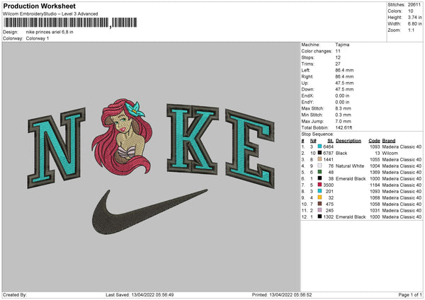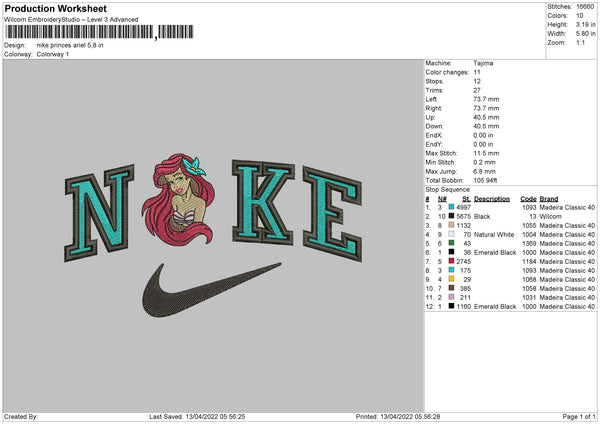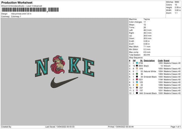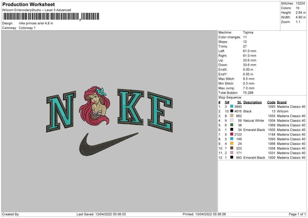 Nike Princess Ariel Embroidery File 4 size