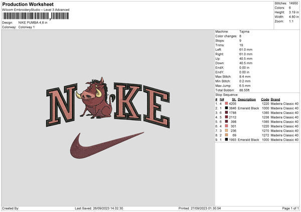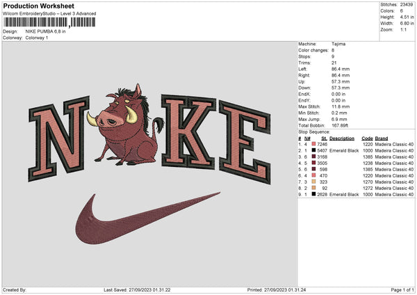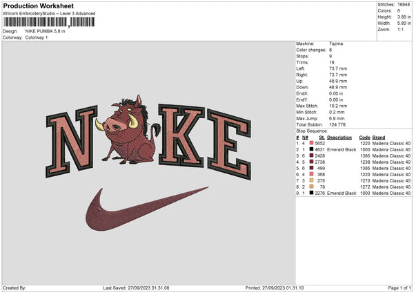 Nike Pumba Embroidery File 6 sizes