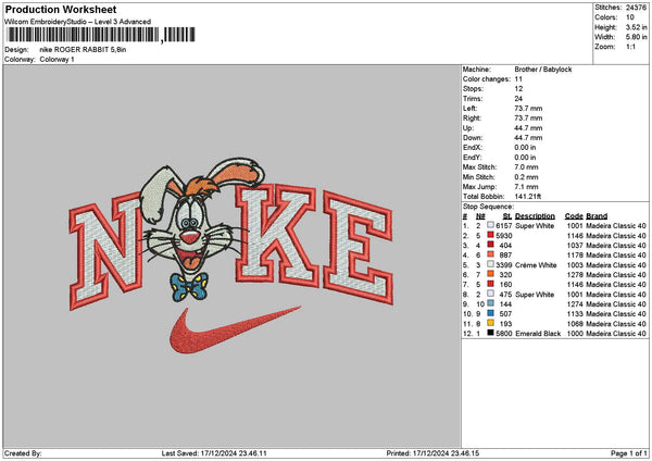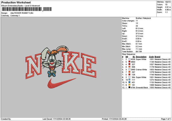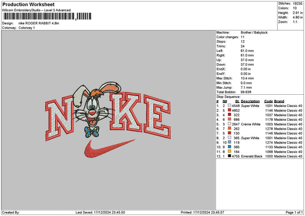 Nike Rabbit 1712 Embroidery File 6 sizes