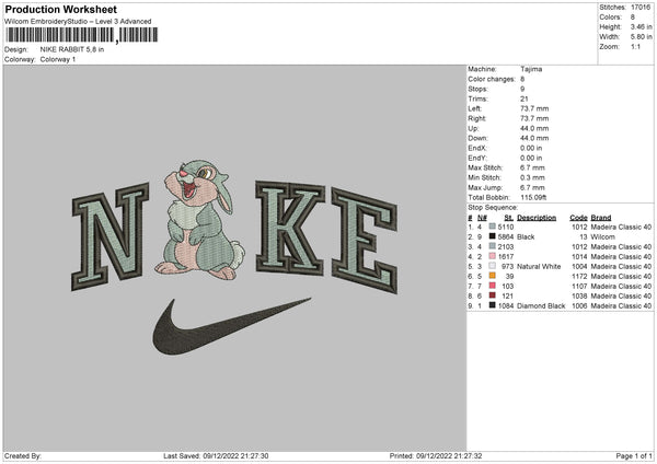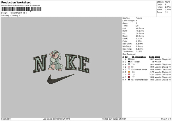 Nike Rabbit Embroidery File 6 sizes
