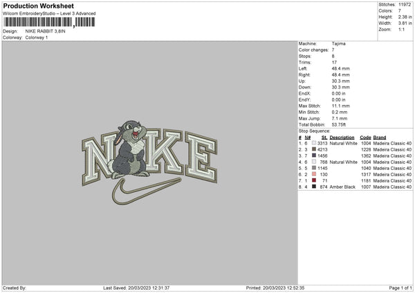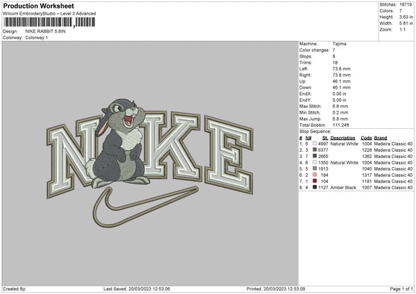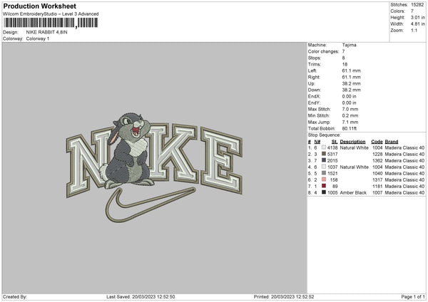 Nike Rabbit Swoosh Embroidery File 6 sizes