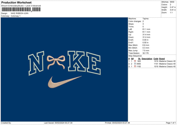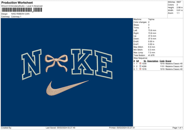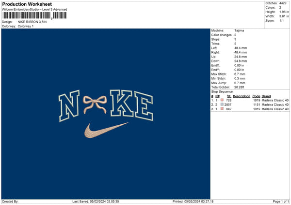 Nike Ribbon 002 Embroidery File 6 sizes