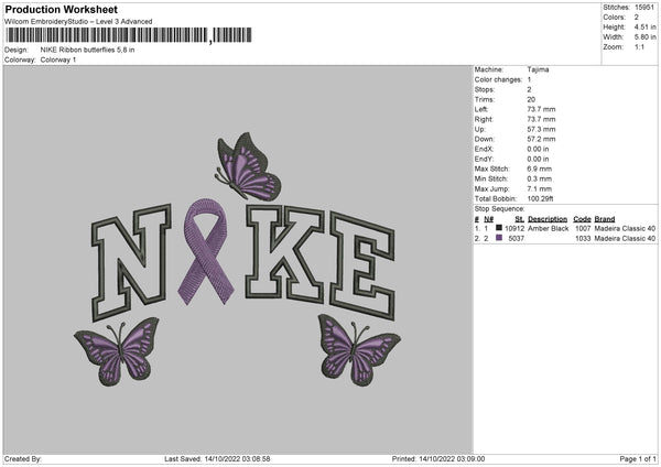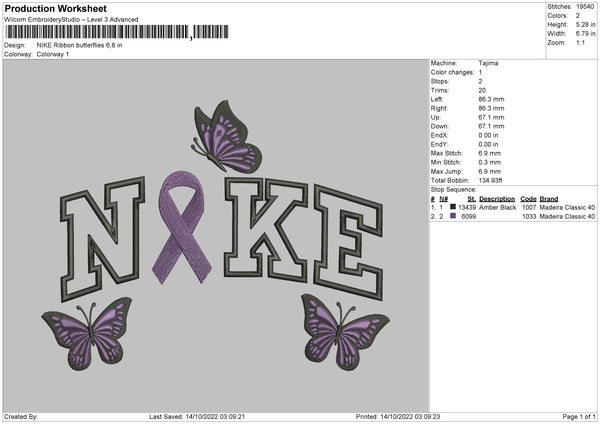 Nike Ribbon Butterflies Embroidery File 6 sizes