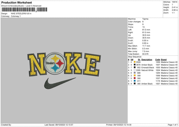 Nike Steelers Embroidery File 6 sizes