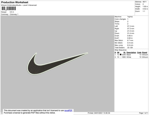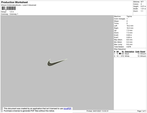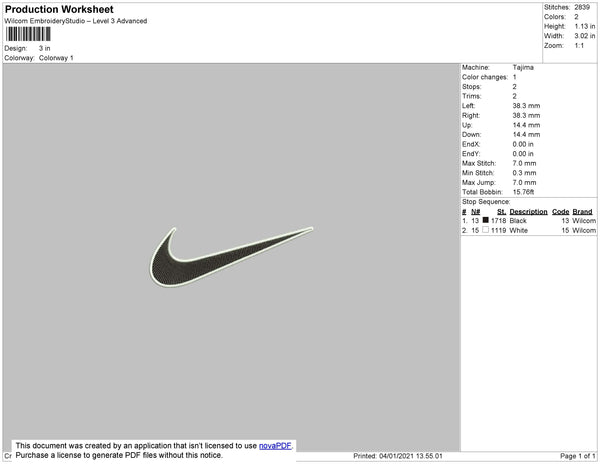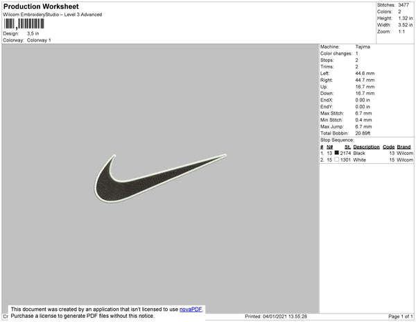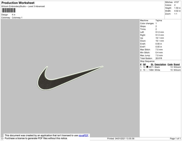 Nike Swoosh 2 Color Embroidery File 9 Size