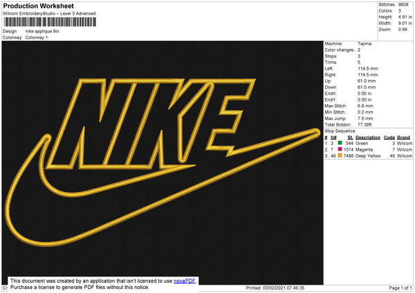Nike Swoosh Applique Embroidery File 8 size