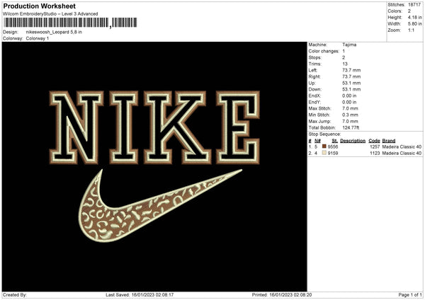 Nike Swoosh Leopard Embroidery File 6 sizes