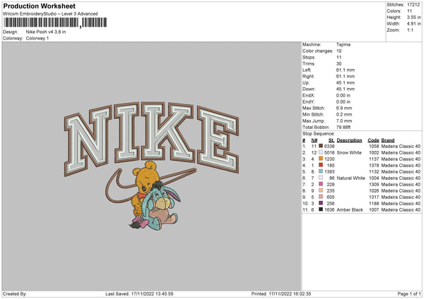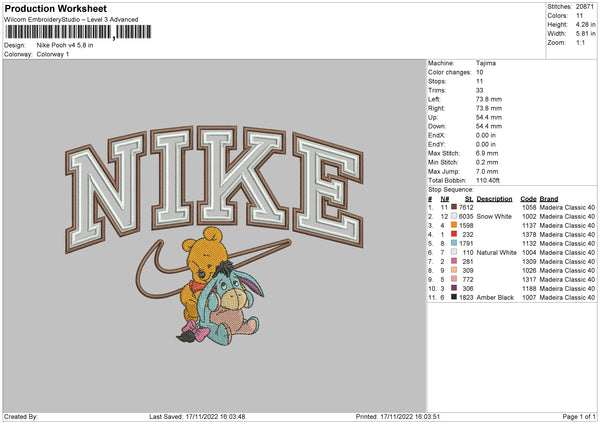 Nike Swoosh Pooh V4 Embroidery File 6 sizes