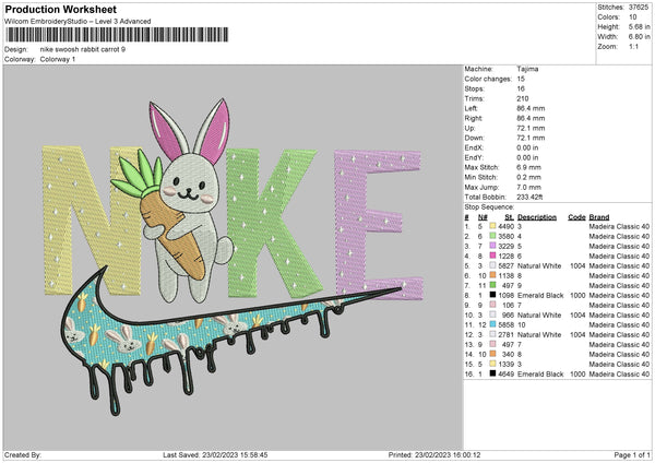 Nike Swoosh Rabbit Carrot Embroidery File 6 sizes