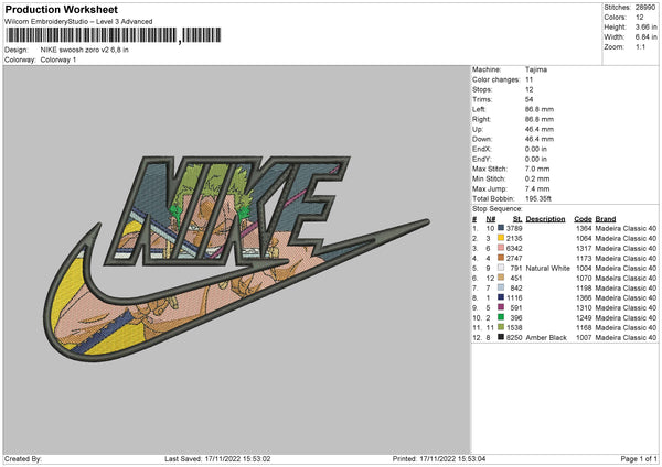 Nike Swoosh Zoro Embroidery File 6 sizes