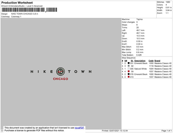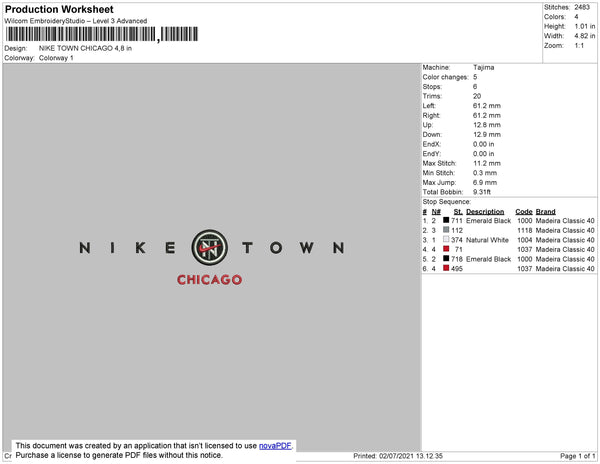Nike Town Chicago Embroidery File 4 size