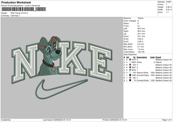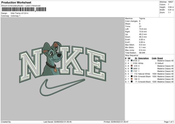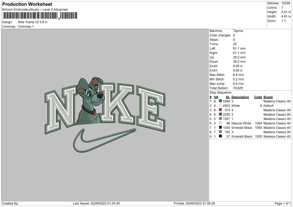 Nike Tramp V2 Embroidery File sizes