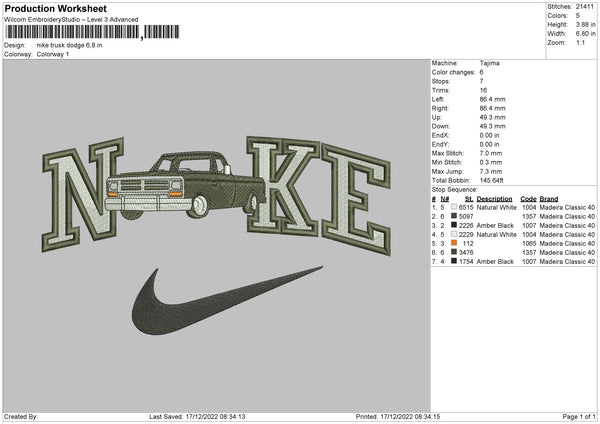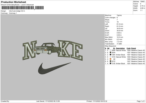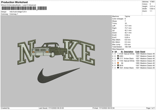 Nike Truck Dodge Embroidery File 6 sizes