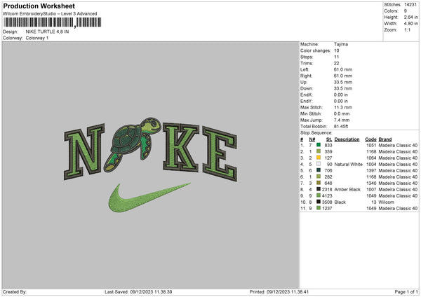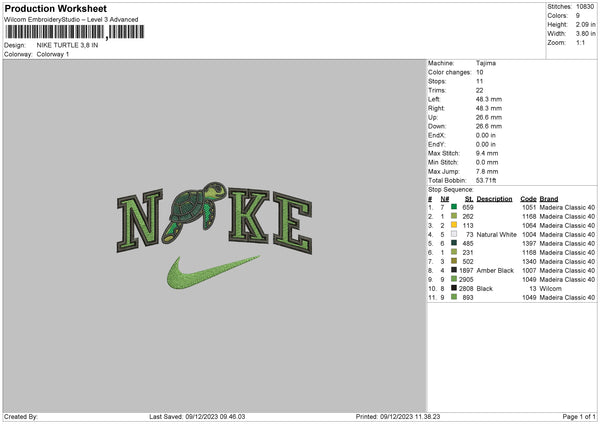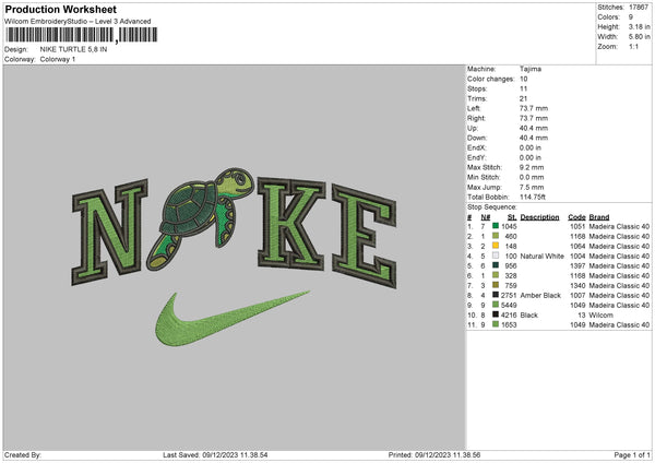 Nike Turtle Embroidery File 6 sizes