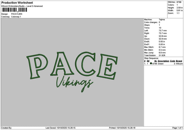 Pacetext Embroidery File 6 sizes