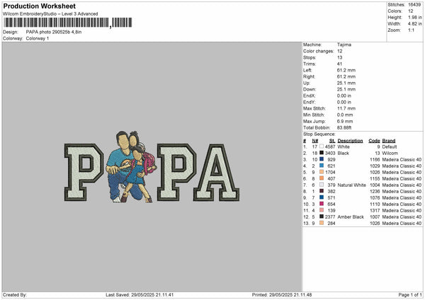 Papa Photo 2905 Embroidery File 6 sizes