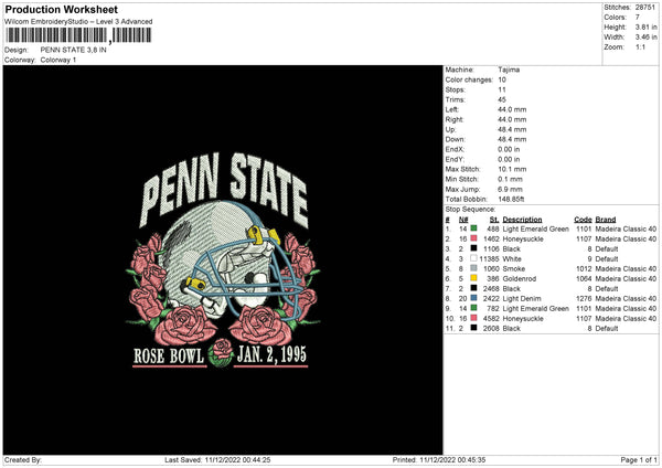 Penn State Embroidery File 6 sizes