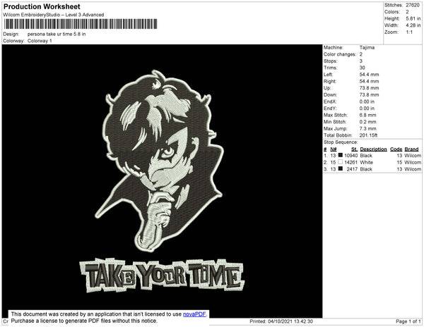 Persona Take Your Time Embroidery File 4 size