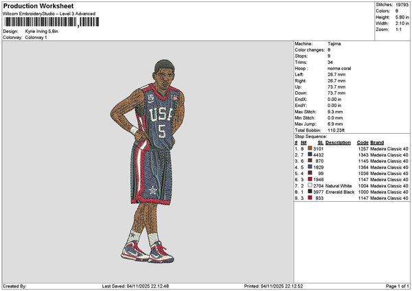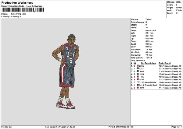 Player Kyrie Embroidery File 6 sizes