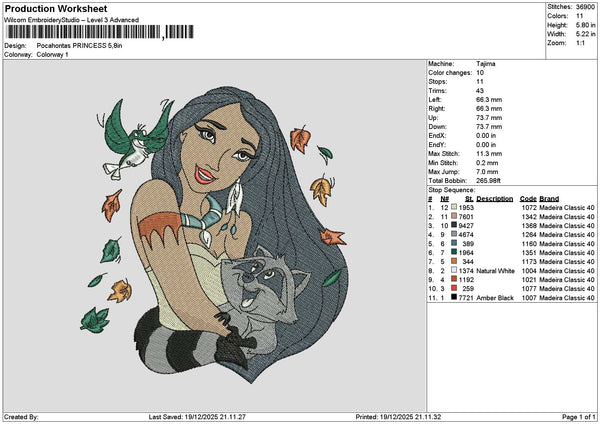 Pocahontas1912 Embroidery File 6 sizes