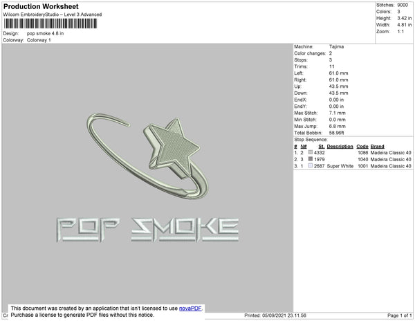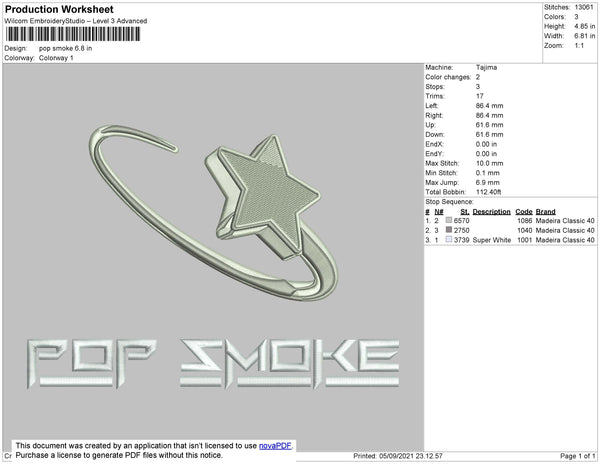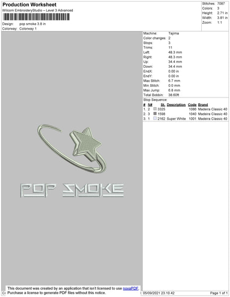 Pop Smoke Embroidery File 4 size