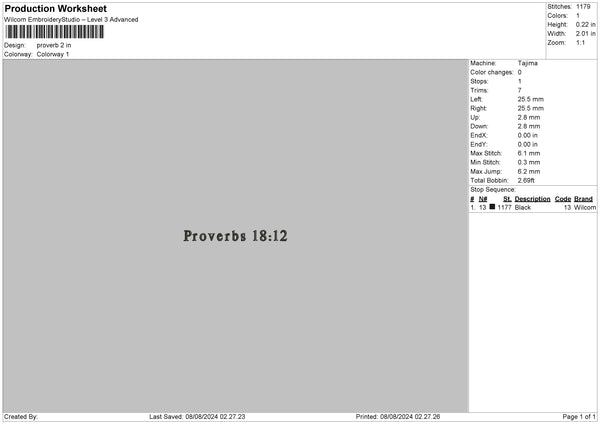 Proverbs Text Embroidery File 6 sizes