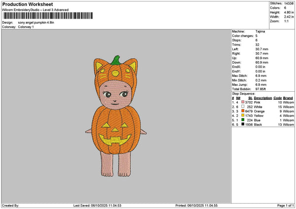 Pumpkin Sony Embroidery File 6 sizes