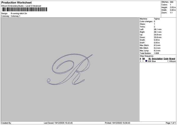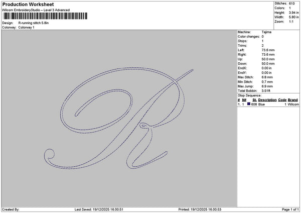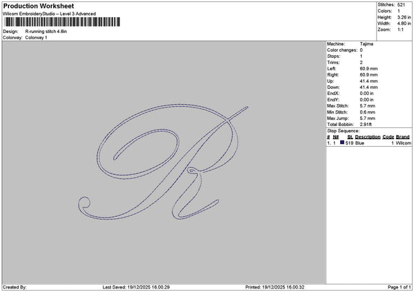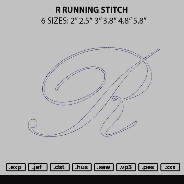 R Running Stitch Embroidery File 6 sizes