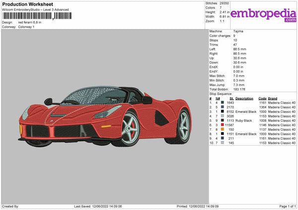 Red Ferarri Embroidery File 4 size